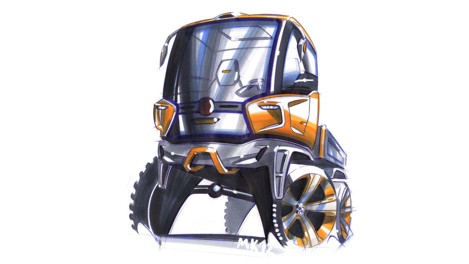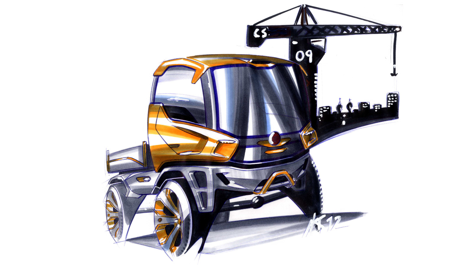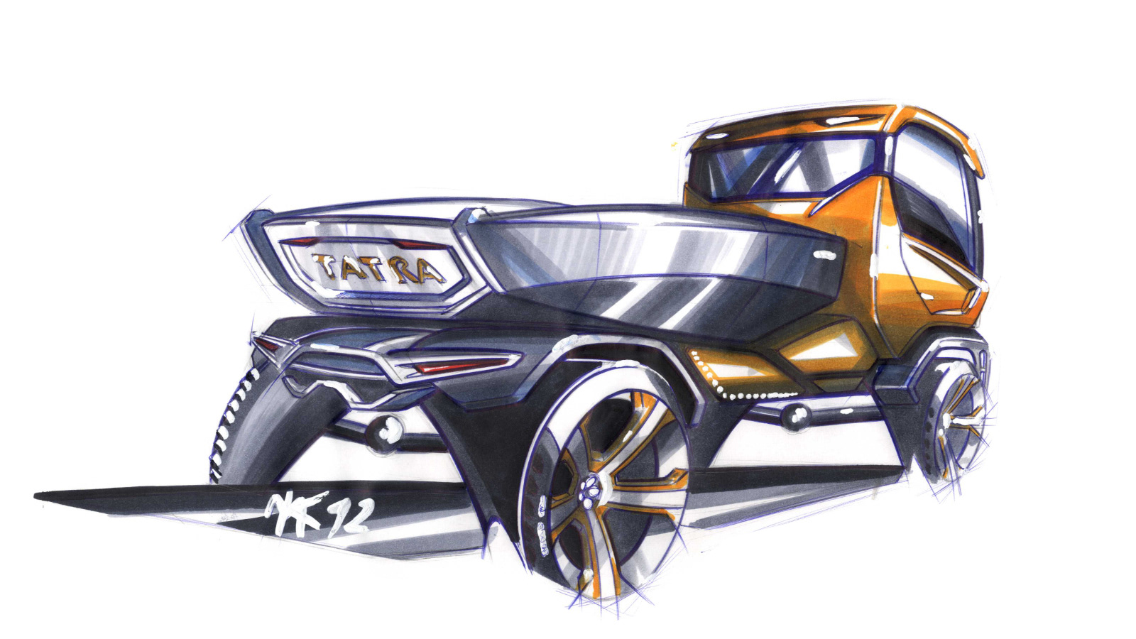 The proper topic of my bachelor´s thesis is Design of a Truck. I have chosen it, as I am very keen on automobile design. In my spare time, I enjoy designing sports and family cars, as well as off-road vehicles. Therefore, it has been a welcome change and considerable challenge to design a truck. From the very beginning, I had known that I wanted to devote the design to a product of the Tatra truck manufacturer in Kopřivnice, Czech Republic. My project, called Tatra Tomcat, is a two-seat truck, with six electro motors running on lithium-ion batteries. Electro motors constitute a part of each wheel, with the batteries hidden in the chassis, behind the driver´s cabin. It could seem that the placement of the motor directly in the axe of the wheel is innovative and timeless, but in fact, it is not. It had been invented more than 100 years ago by the world-famous constructor Ferdinand Porsche. However, at the beginning of the 20th century, the batteries only had a small, insufficient capacity, today, the situation is considerably different. In the near future, most cars shall be run by alternative sources of power, a dominating part of which will be electro motors. The comfort driving on any surface shall be secured by electromagnetic absorbers, which enable setting freely the rigidness. This invention comes from the German automobile producer Audi; however, for a truck, it is being used for the first time.The design of the Tatra truck is innovative and at the same time, it is based on the tradition of the Kopřivnice automobile legend. The large front window of the driver´s cabin is a new element, securing a good view from the cabin, including in complex situations. Viewing the truck from the side, we shall be drawn in by its dynamic shape, evoking the feeling of power and motion. The major areas of the cabin are, however, simple, vertical and they may even look austere. The aim was to provide a buffed design, commanding respect. For inspiration, I looked to architecture, nature, current trends of the automobile design, as well as to the interplanetary space ships from the world-famous Star Wars movie series. Tatra Tomcat uses the most up to date technologies, which simplify the driver´s tasks. Three cameras, having replaced the spring-back mirrors, are another innovative element of the truck. The picture from these cameras is transferred to a large LCD screen. Yet another new feature is a group of safety elements, unparalleled in the category of trucks and utility vehicles. Especially, these include an airbag determined to protect against other vehicles or an airbag against the impact with a pedestrian. All safety systems are managed by a smart computer, which uses the camera system and radar for its function. Tatra can be delivered in various variants, with a different number of wheels and trailers. Tomcat constitutes a new generation of trucks and in a time of economic challenges, brings Tatra some positive prospects.